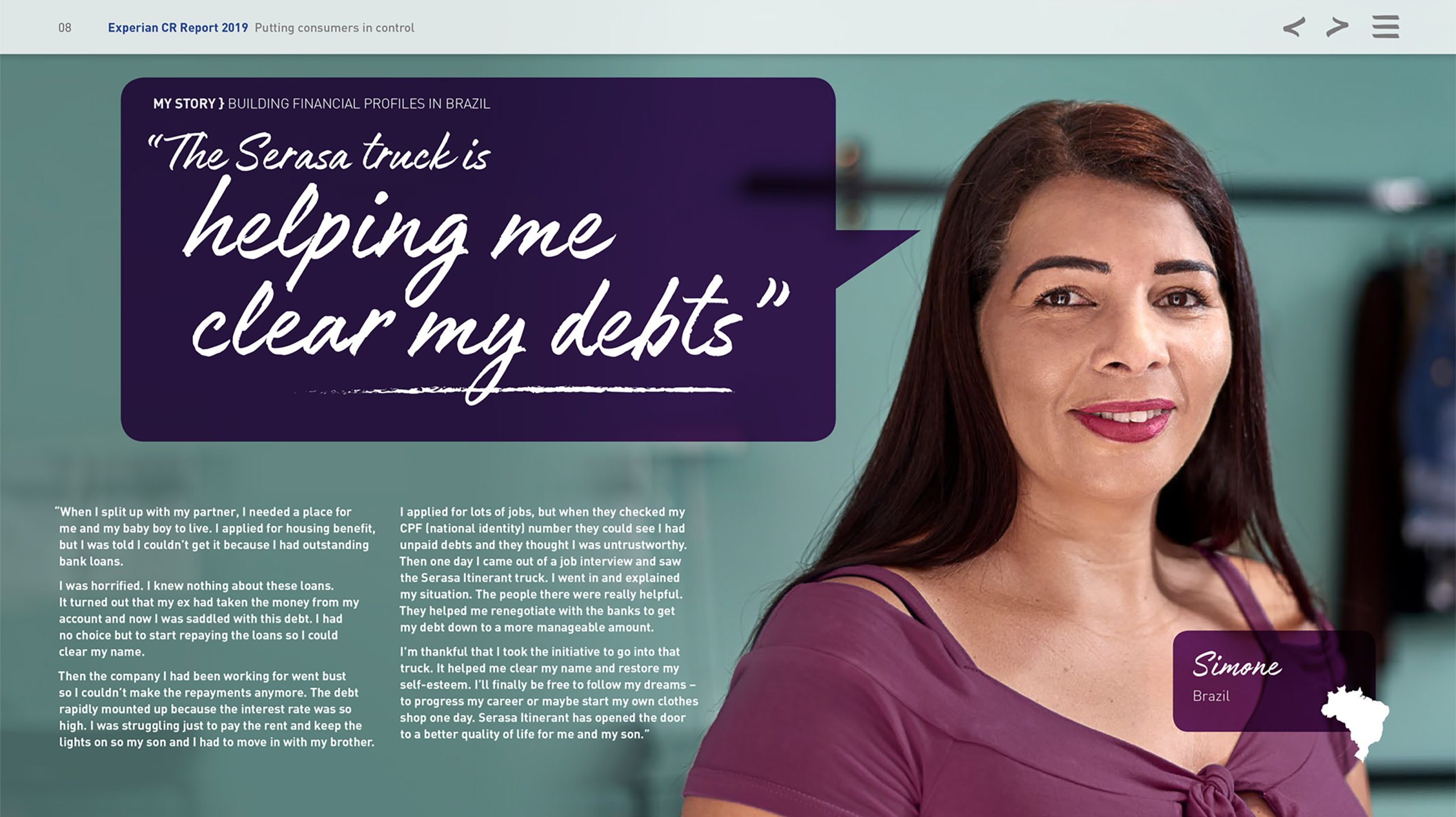Key quotes and stats were pulled out from the case studies and treated with a handwritten font to give the individual stories a personal touch. The result is an interactive report that shows Experian’s range of empowering stories told by the people affected in an authentic and personal way.