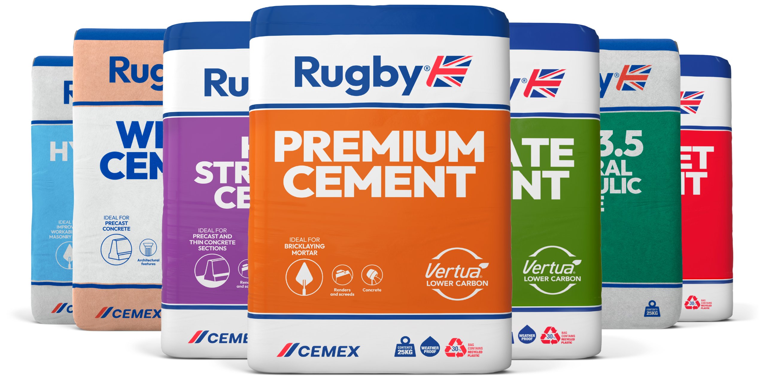 A refreshed design of Cemex’s Rugby Cement range enhances the brand’s shelf appeal while making it quicker and easier to choose the right product for the job.