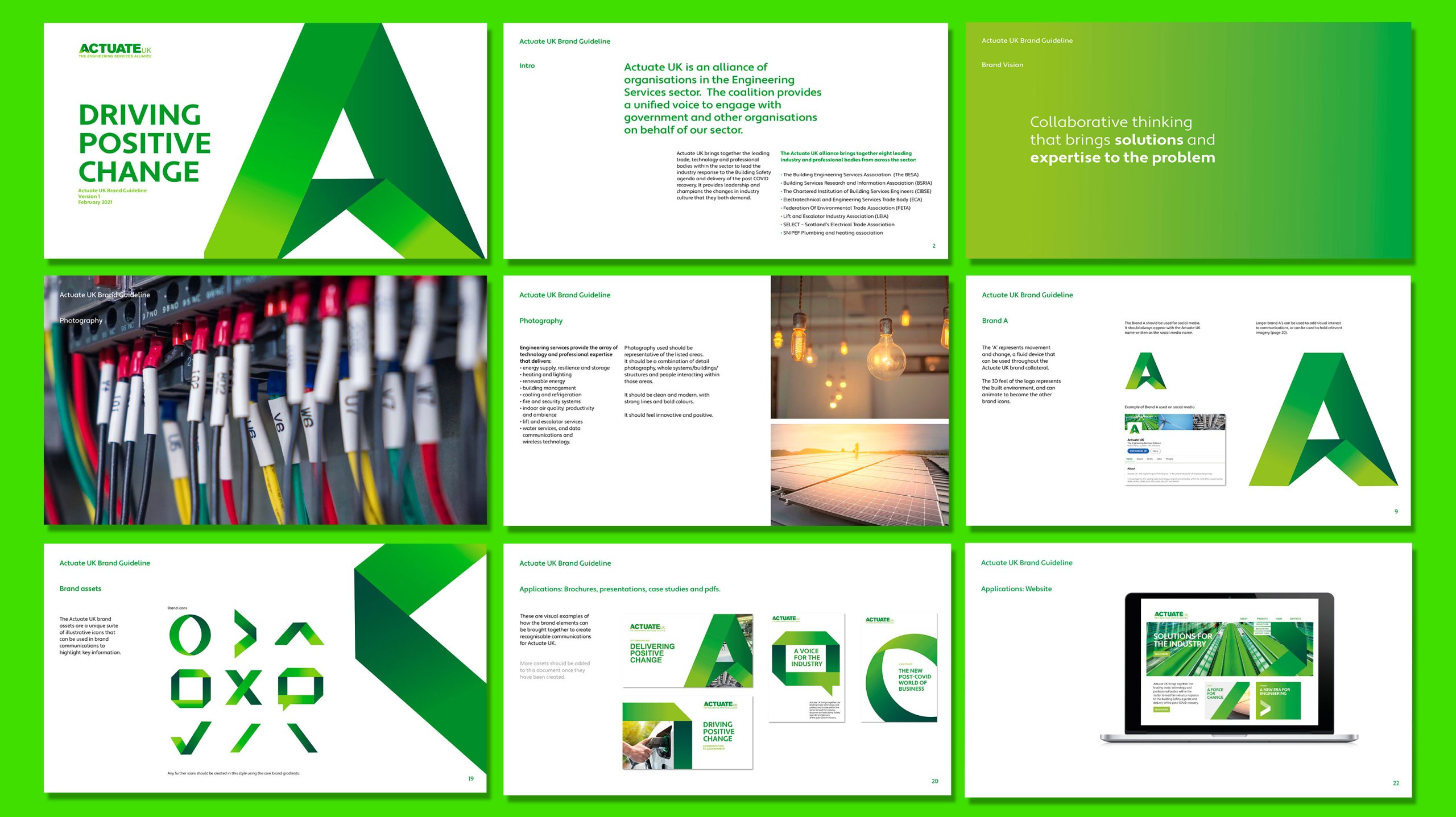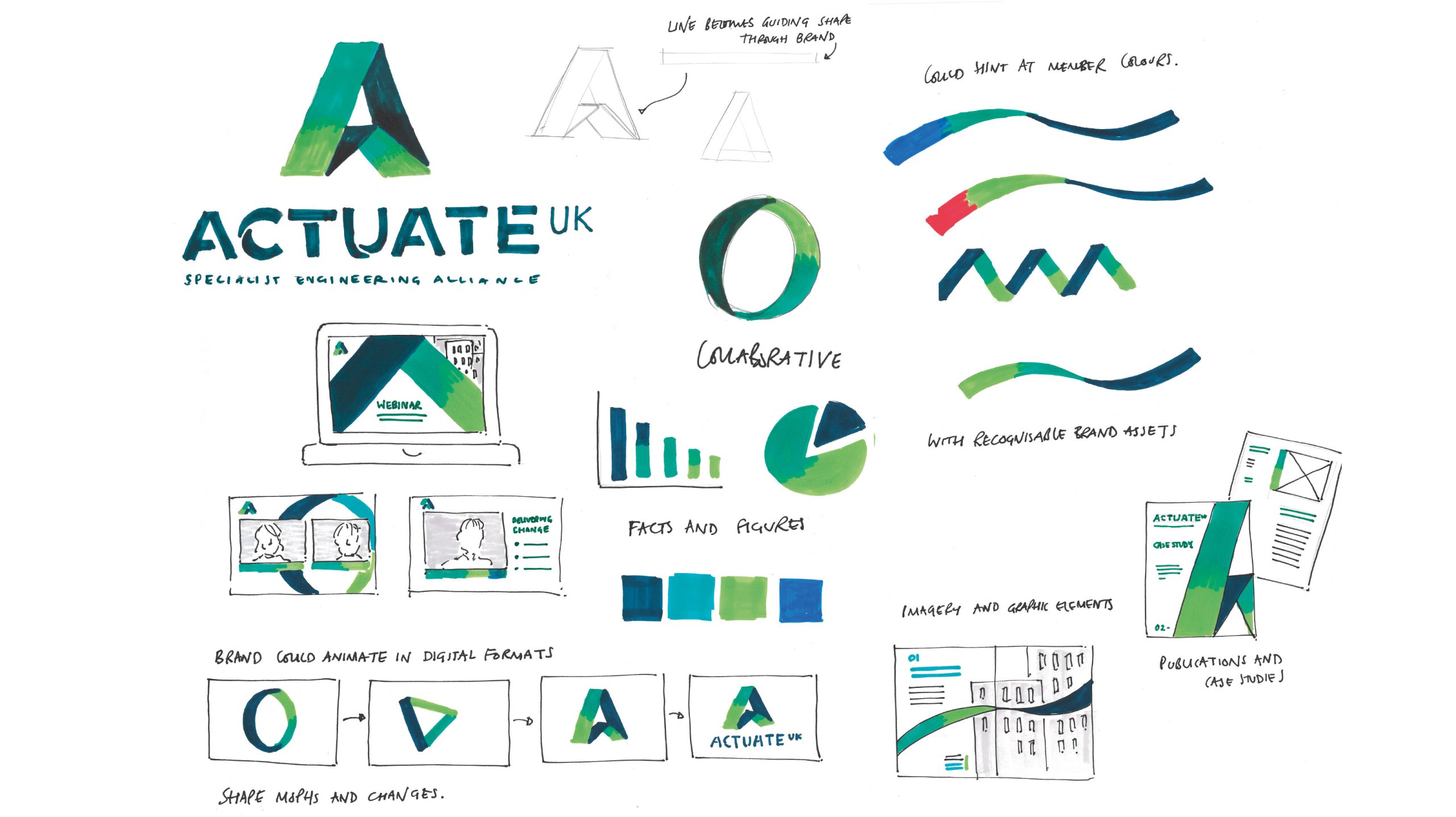 We have created a fluid, dynamic identity for Actuate UK, a brand-new organisation that unites eight leading trade, technology and professional bodies within engineering services.