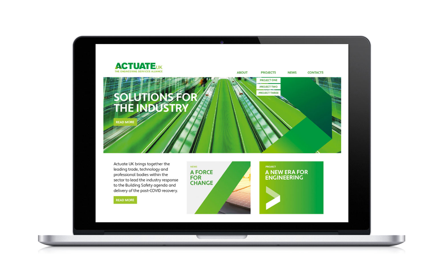 We took a clean, modern approach based around a striking 3D letter ‘A’, which represents the built environment at the heart of Actuate UK’s business.