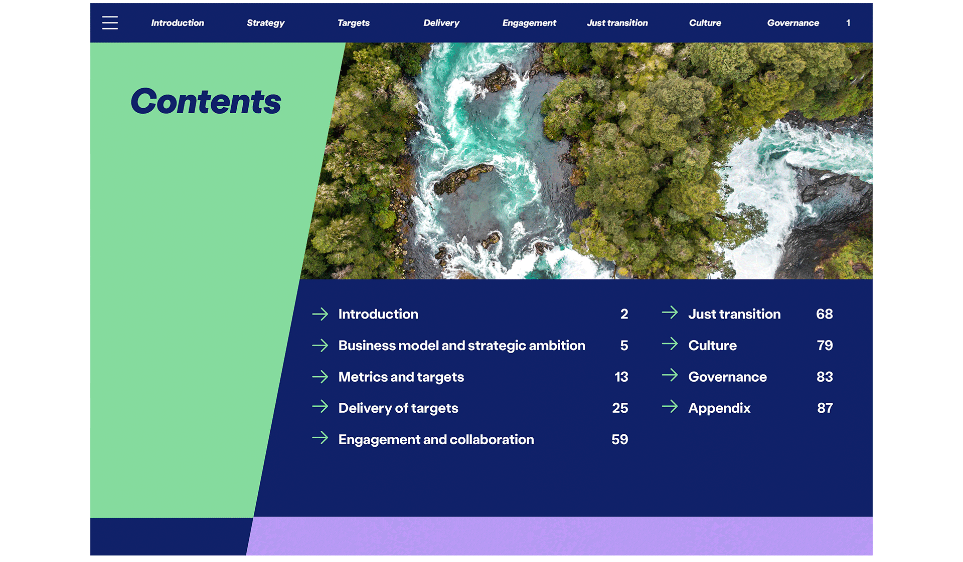 Embracing their brand, we built a fully interactive report with quick links for easier navigation and made sure each type of content was given its own style and space to breathe.