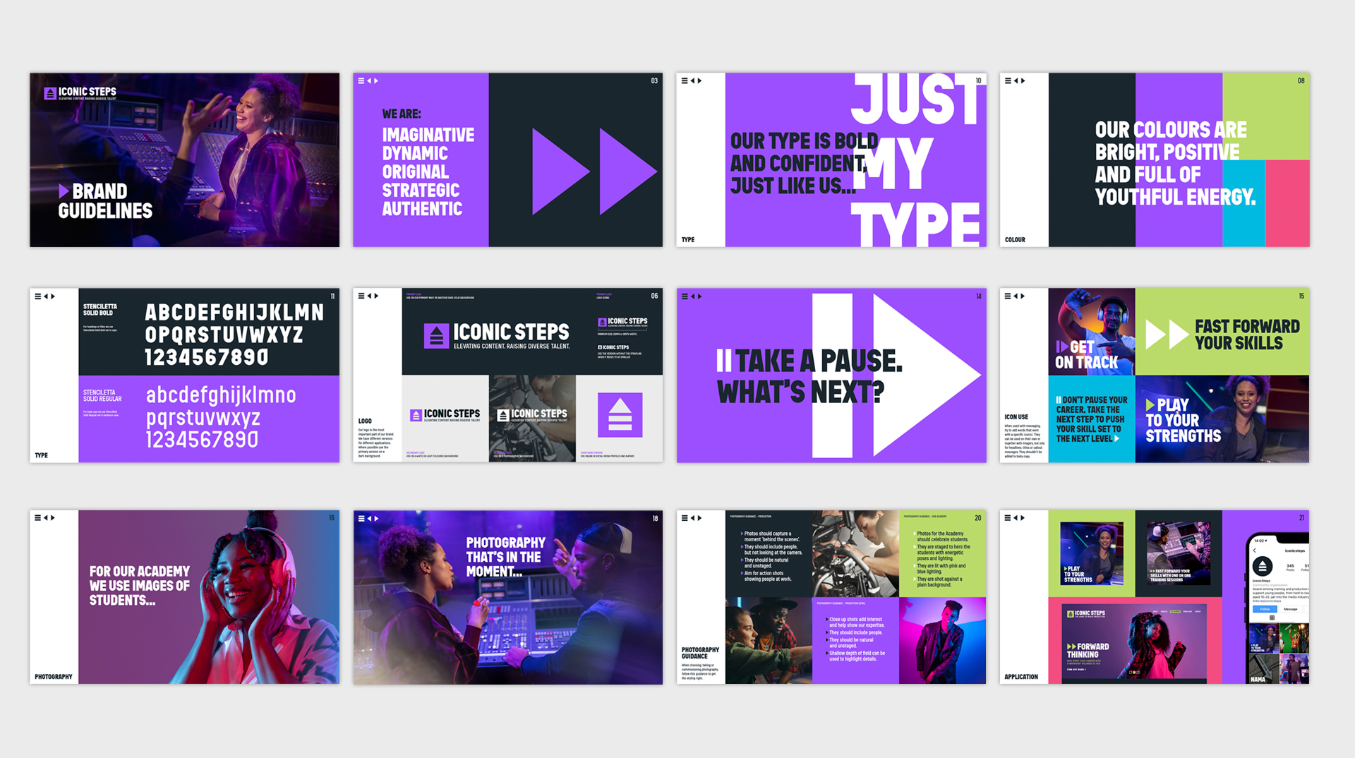 We’ve created a vibrant new brand for Iconic Steps, a social enterprise that supports young people aged 16–25 from diverse and under-represented backgrounds to enter the media industry.