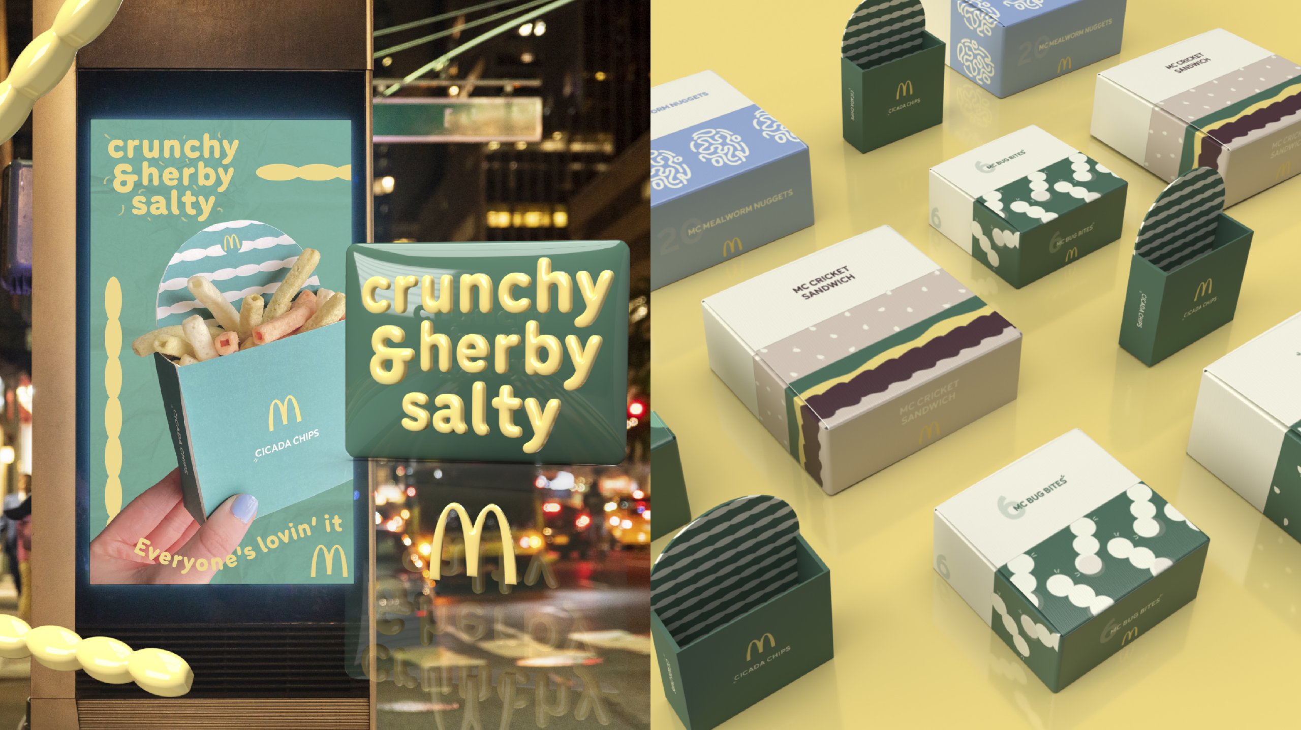 “Starting with the theme of retail and food, I asked Chat GPT to generate a possible McDonald’s Menu from 2050. Utilising the answers from this search combined with in-depth research into scientists predictions of what we could be eating in the future, I redesigned a selection of items on the McDonald’s Menu that could be found from 2050, including alternative future advertisements.”