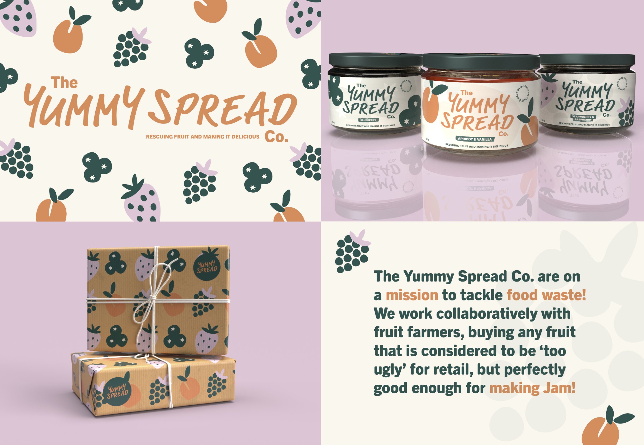 “Sustainability was at the forefront of the design process for this passion project. I was driven to create a unique brand that not only looked appealing, delicious and exciting, but one that made a positive impact in some way. I spent time researching into fruit production within the UK, finding that 1/3 of farmed fruit and vegetables never reach the supermarket shelves due to it being ‘not good enough’ – this concept aims to help tackle the issue.”