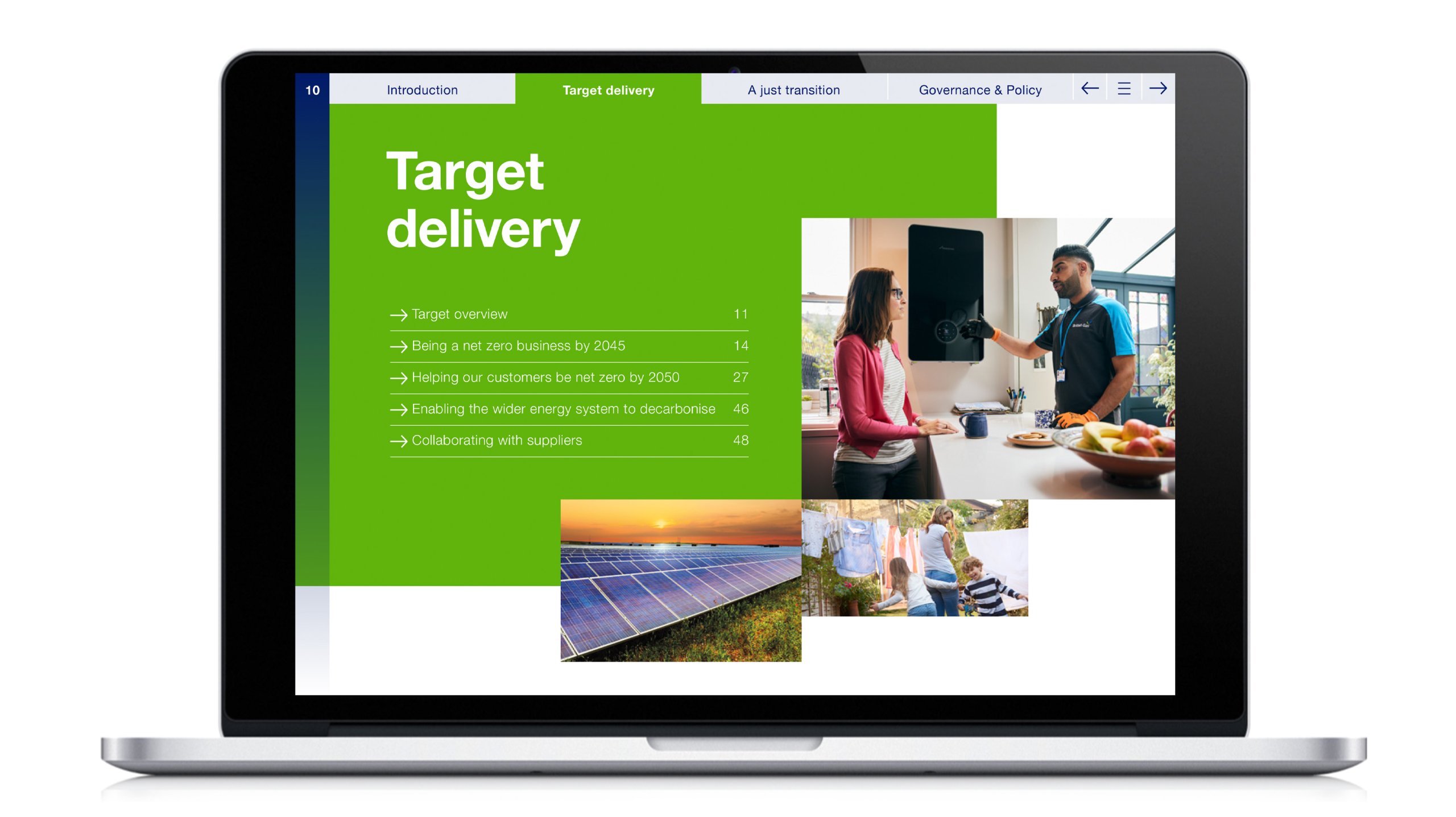 Working closely within Centrica’s guidelines, we made full use of their colour palette and brand assets to section out the different types of content. Clear navigation and simple interactivity made sure the information could be easily digested and accessible for all, from politicians and NGOs to colleagues and customers.