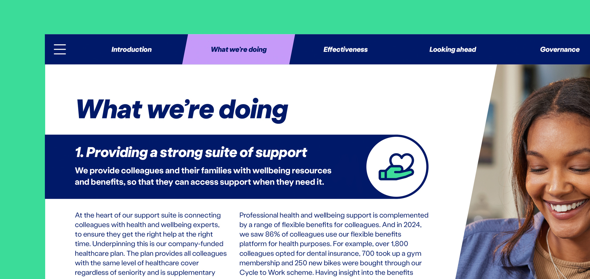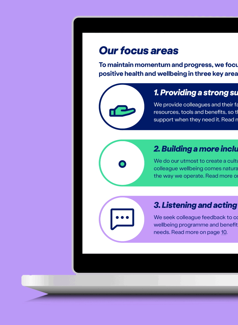 Each report is accessibility compliant and fully interactive with quick links for easier navigation. With a range of content including graphs, infographics, case studies and testimonials alongside targets and ambitions, our job was to bring everything together in one, cohesive design.