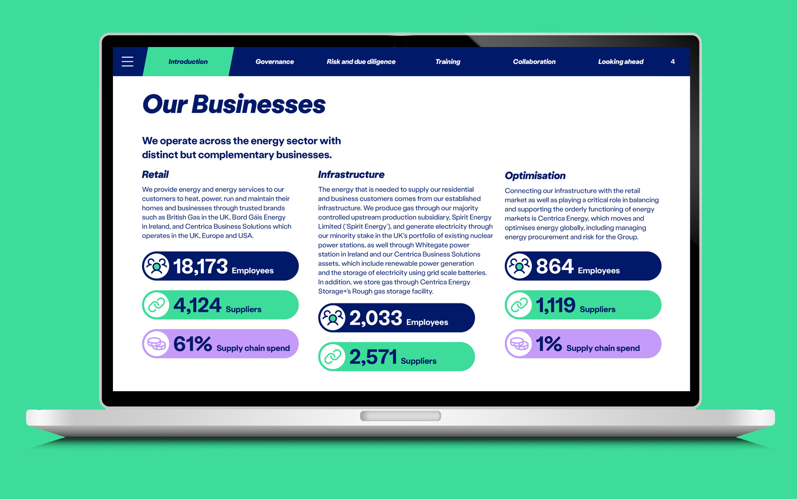 Following the successful publication of their Climate Transition Plan, we’ve been busy working on three additional reports for Centrica. With subjects covering Health & Wellbeing, Gender & Ethnicity and Modern Slavery, they represent the company’s commitment to a greener, fairer future for all.