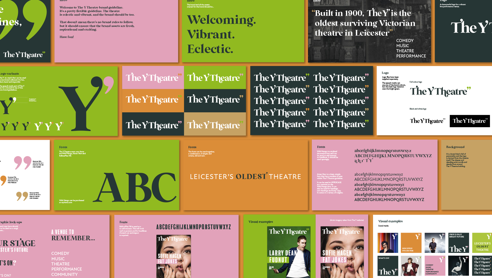 We’ve created a vibrant and eclectic new brand identity for The Y Theatre, Leicester’s oldest surviving Victorian venue of its kind. Found adjacent to its parent organisation, the YMCA, The Y is a cosy, intimate and welcoming place with no stuffy airs and graces, where punters can get up close and personal to well-known and upcoming artists, comedians and musicians.