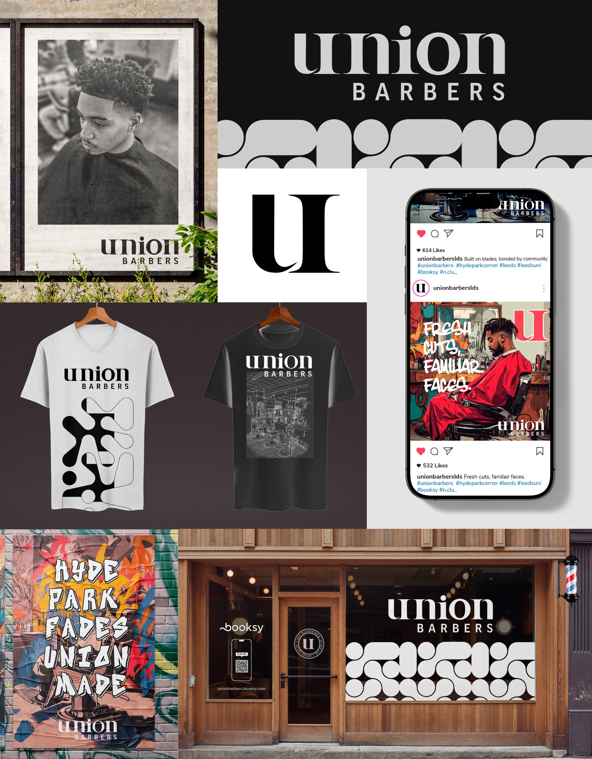 “For this rebrand, I chose The Union Barbershop in Hyde Park, Leeds – a place deeply personal to me, run by my family and rooted in community. My concept centers on celebrating the barbershop’s local identity by blending its modern style with the raw, expressive character of Hyde Park’s graffiti culture.