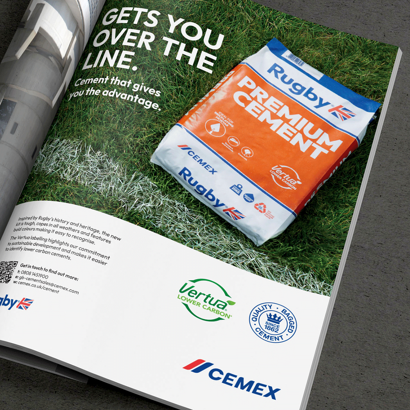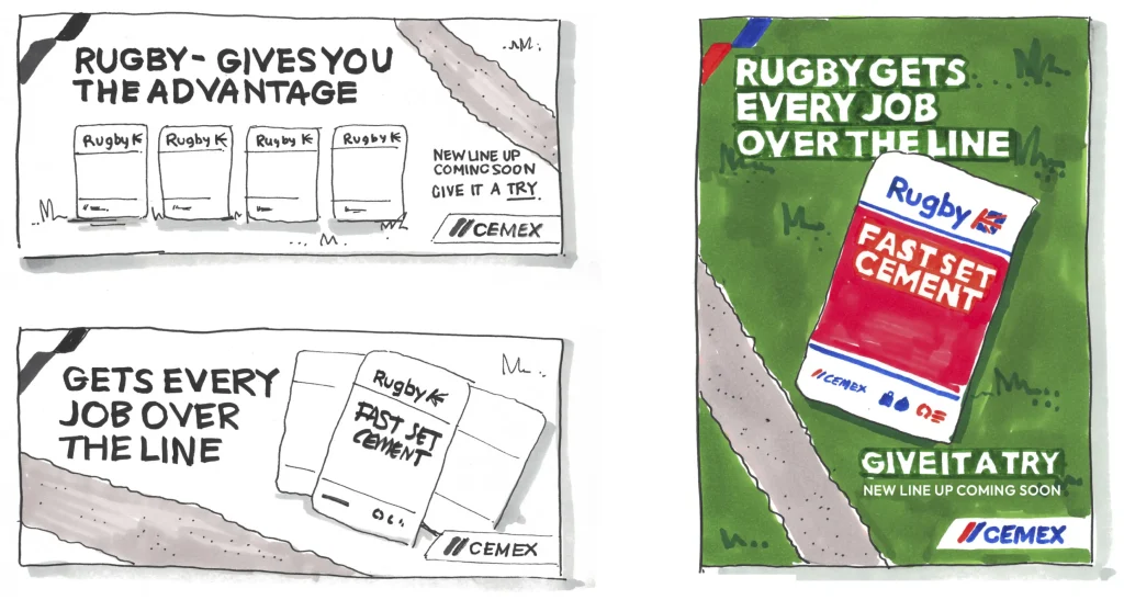 Project Since 1862, builders of Britain have been tackling the toughest of jobs with Rugby bagged cement products. With the range receiving a packaging design update to improve shelf appeal and to make it easier to choose the right product, we worked with Cemex to develop an integrated campaign to relaunch the range’s ‘new kit’.